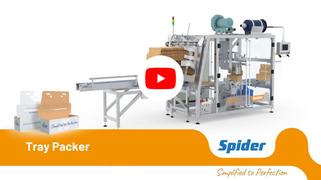 Spider, a versatile tray former designed to meet the diverse needs of the packaging industry. The Spider offers a range of tray packer solutions, ensuring flexibility and efficiency in food industry.